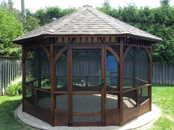 GAzebo Moderne / 12 x 24 / Pin blanc / Toit en bardaux / Noir onyx